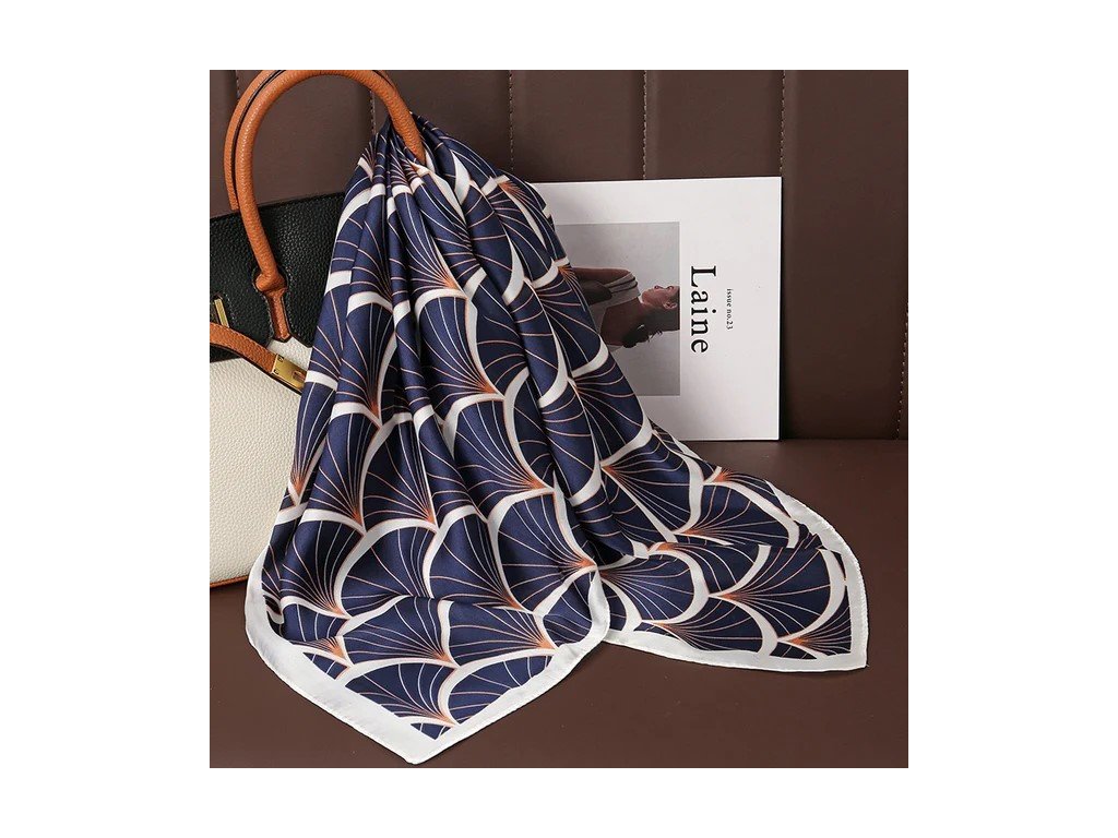Anyaga: poliészter : „Selyemhatású luxusérzet, amit bátran viselhetsz a hétköznapokban is – nem gyűrődik, nem kényes, mégis lágy esésű és csodásan fénylik. Minden, amit a selyemtől vársz – kivéve a kényes kezelést. Lágy, nőies, mégis praktikus: az új kedvenc kendőd. Senki nem kérdezi, miből van – csak azt, honnan van.”