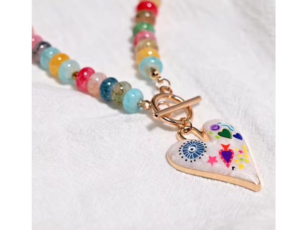– Színes üveggyöngyök, szívmedállal (3,5 cm )