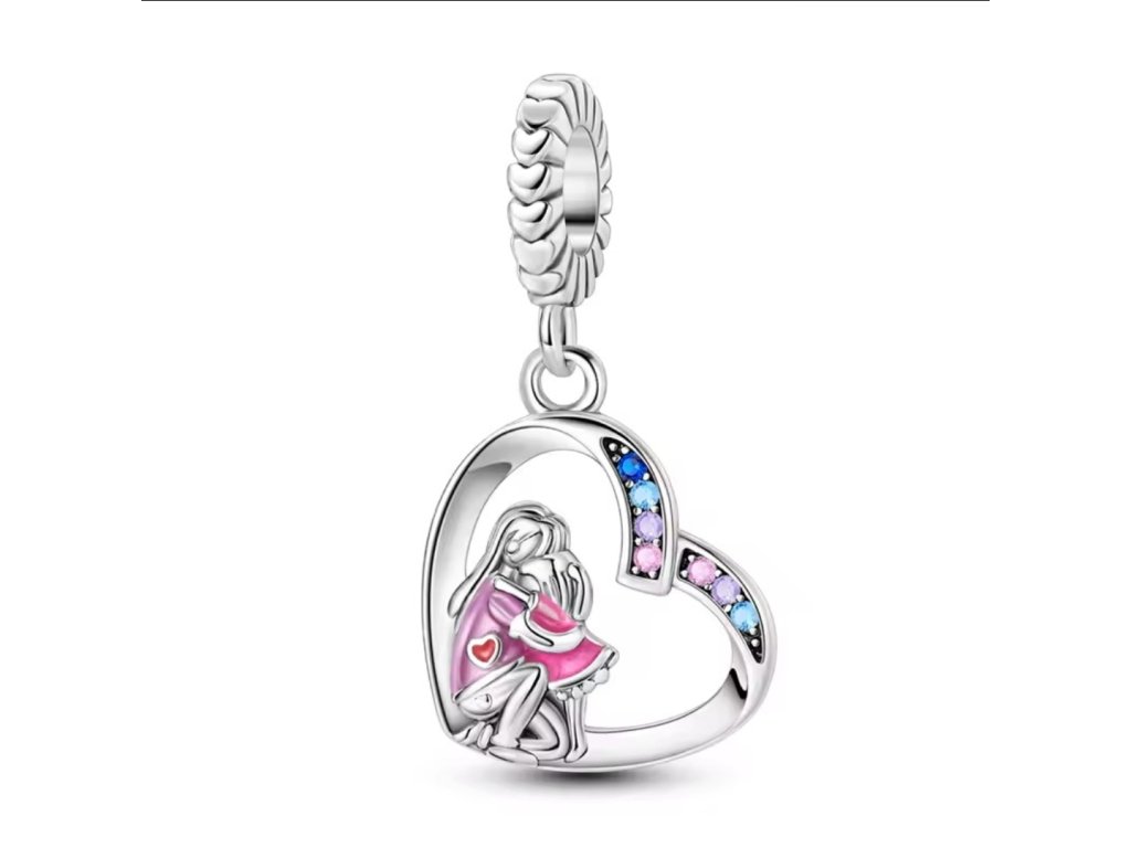 A Szívbe Zárt Gondoskodás charm egy meghitt anya–gyermek jelenetet ábrázol, amelyet finoman ívelt szívforma ölel körbe. A rózsaszín zománc részletek és a szív külső ívén futó színes kövek a szeretet sokszínűségét és erejét szimbolizálják. Ez a charm nem csupán ékszer, hanem egy érzelem – emlék a gondoskodásról, az oltalomról és az örök kötődésről.